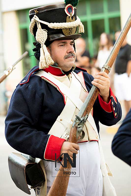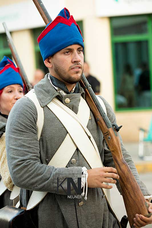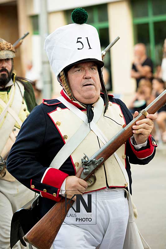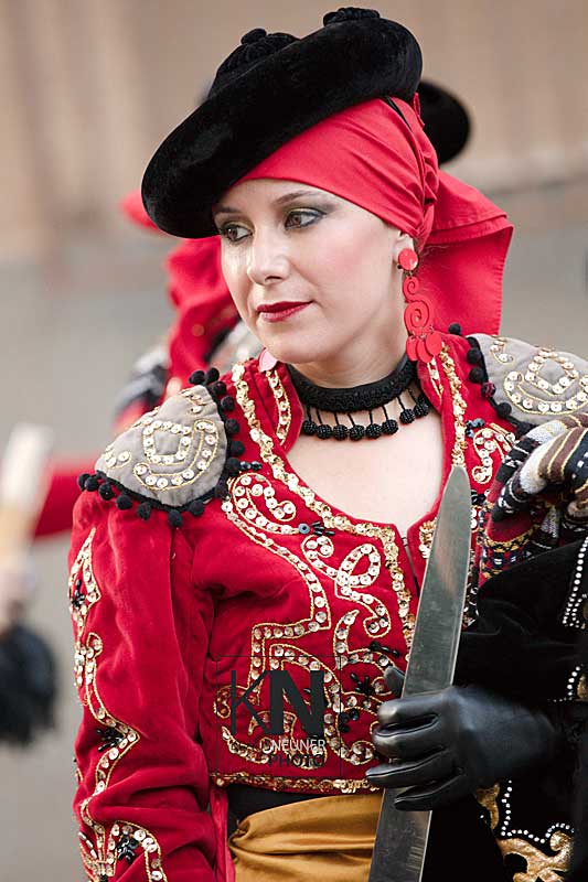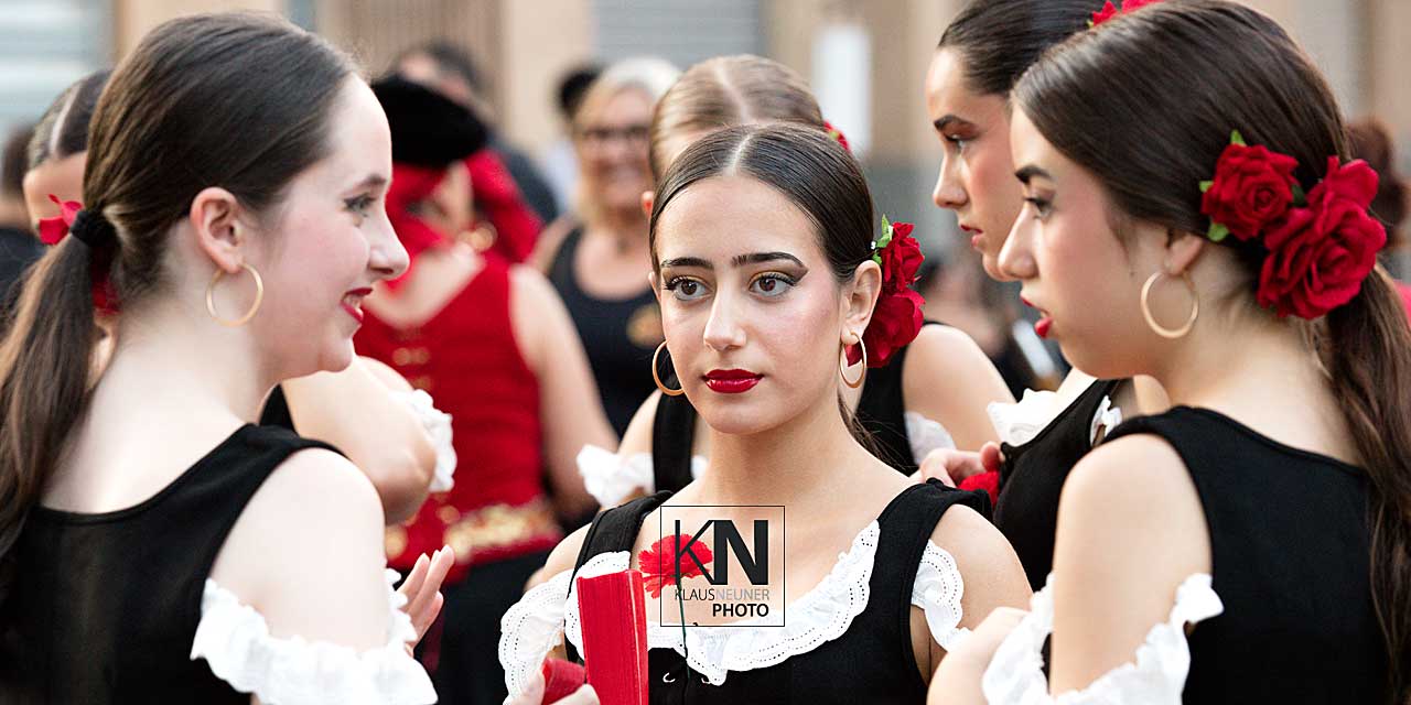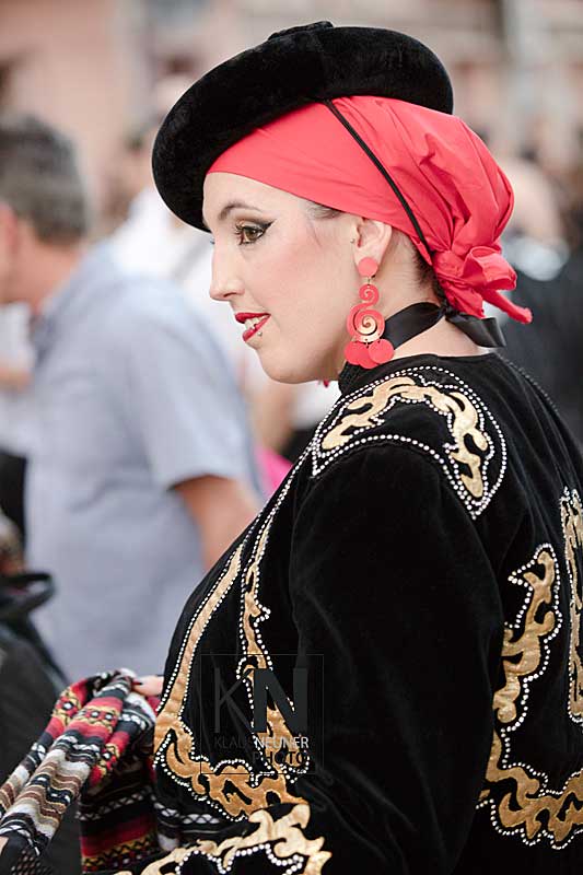 Zu den Höhepunkten im Jahresablauf in Spanien zählen bei den Fiestas die spektakulären Umzüge, Auftritte, Veranstaltungen der Moros y Cristianos wie hier in Orihuela, in der Vega Baja, an der Costa Blanca. Hier nun die Vorbereitungen zum „Desfile de la Entrada Cristiana“, dem Umzug der Cristianos.