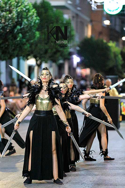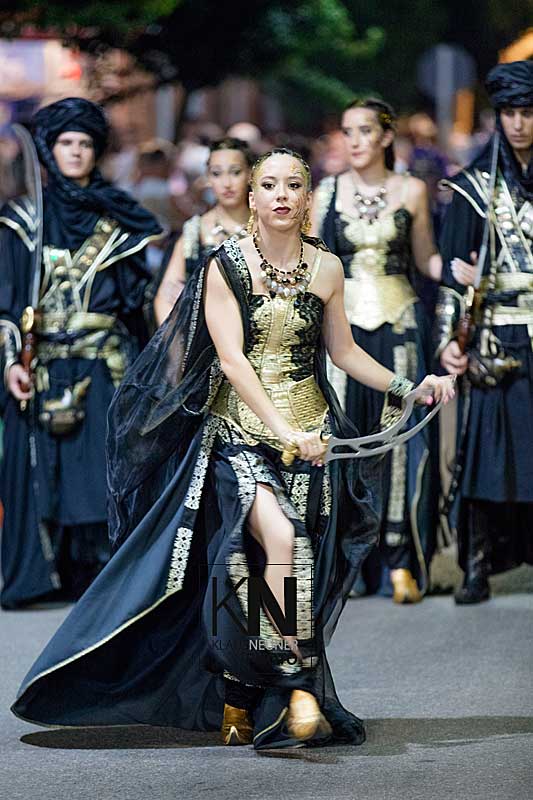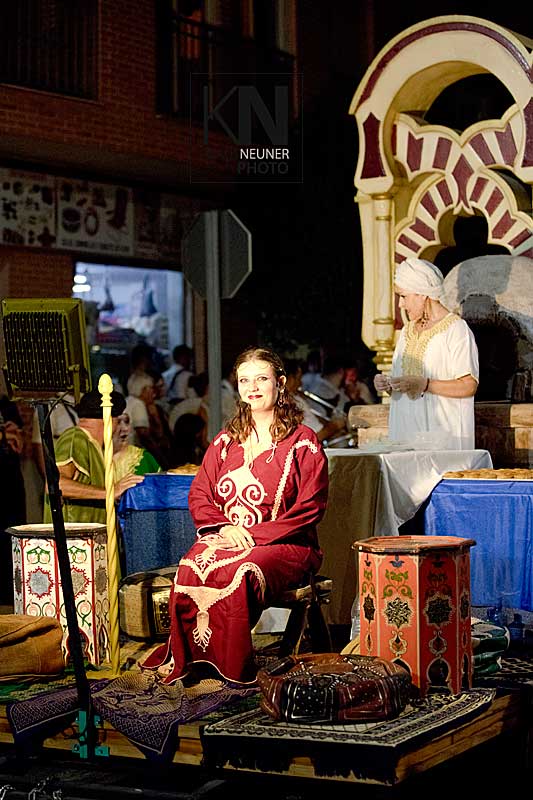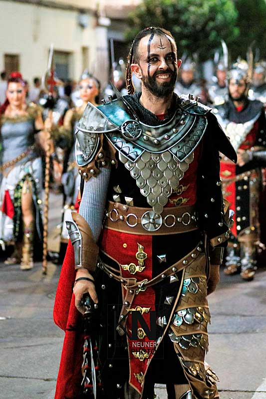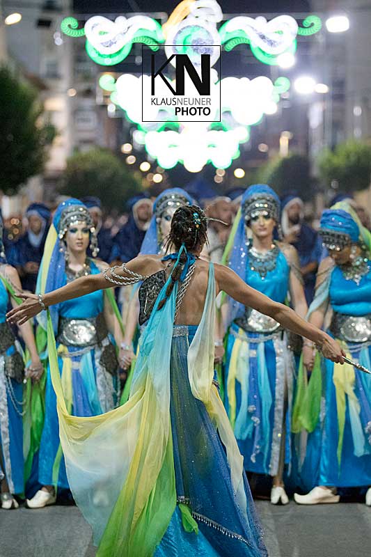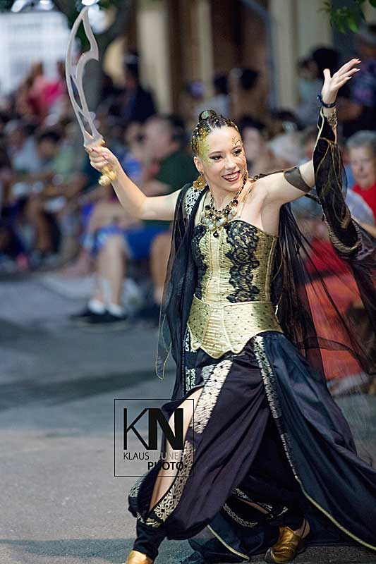 Zu den Höhepunkten im Jahresablauf in Spanien zählen bei den Fiestas die spektakulären Umzüge, Auftritte, Veranstaltungen der Moros y Cristianos wie hier in Almoradi, in der Vega Baja, an der Costa Blanca.